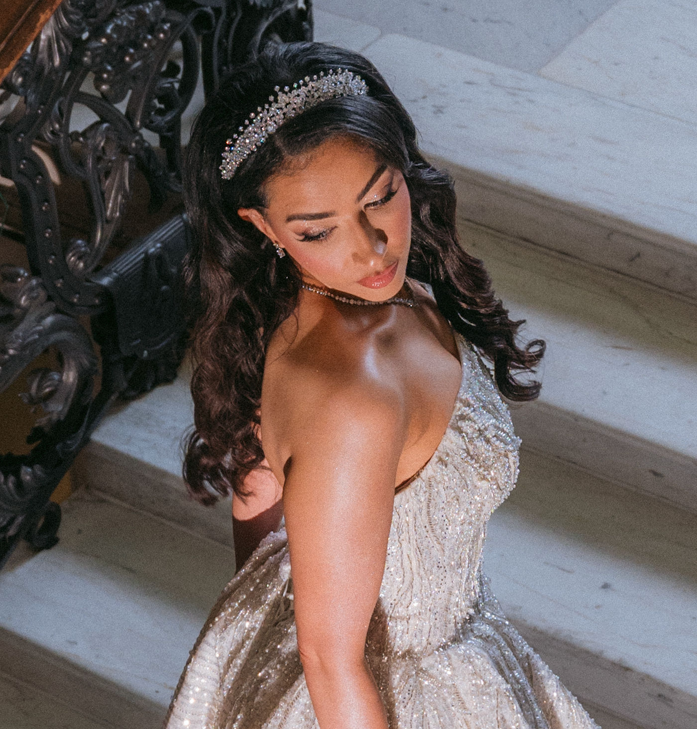 Designed to captivate and enhance the bride's elegance on her special day. With their exquisite craftsmanship and intricate details, these headpieces shimmer with a mesmerising radiance, illuminating your beauty.