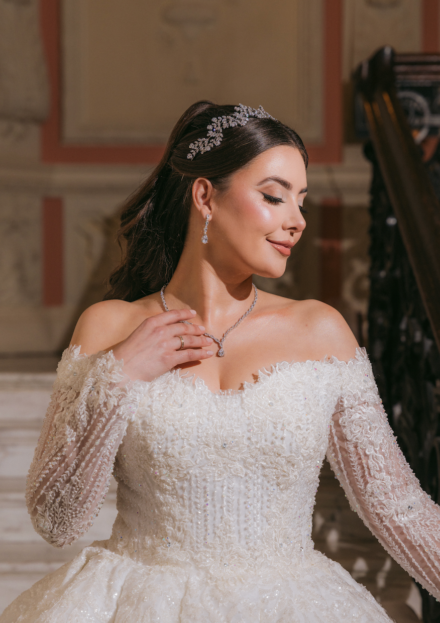 The opulence of the materials used, are diamonds, lustrous pearls, and delicate metals, adds a touch of luxury and sophistication, making each headpiece a true masterpiece.