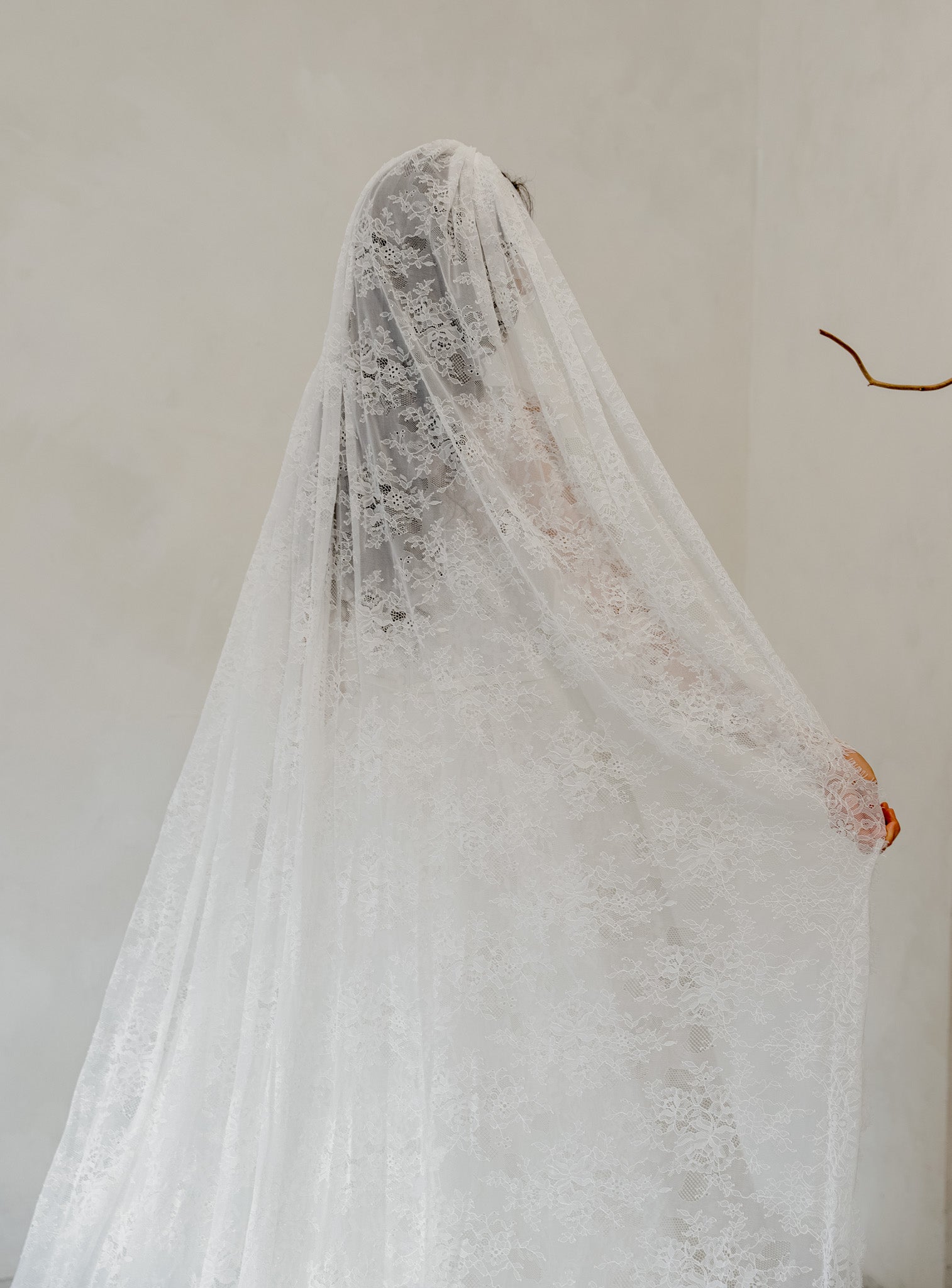 Designed for brides who value heritage with a modern spirit, the Lacey veil pays homage to vintage European bridal traditions while maintaining a lightweight and fluid drape. Whether styled with a high bun or flowing waves, this veil falls effortlessly, creating a romantic silhouette from every angle. With its dreamy aesthetic and heirloom quality, Lacey is more than just a veil—it’s a statement of timeless femininity and bridal grace
