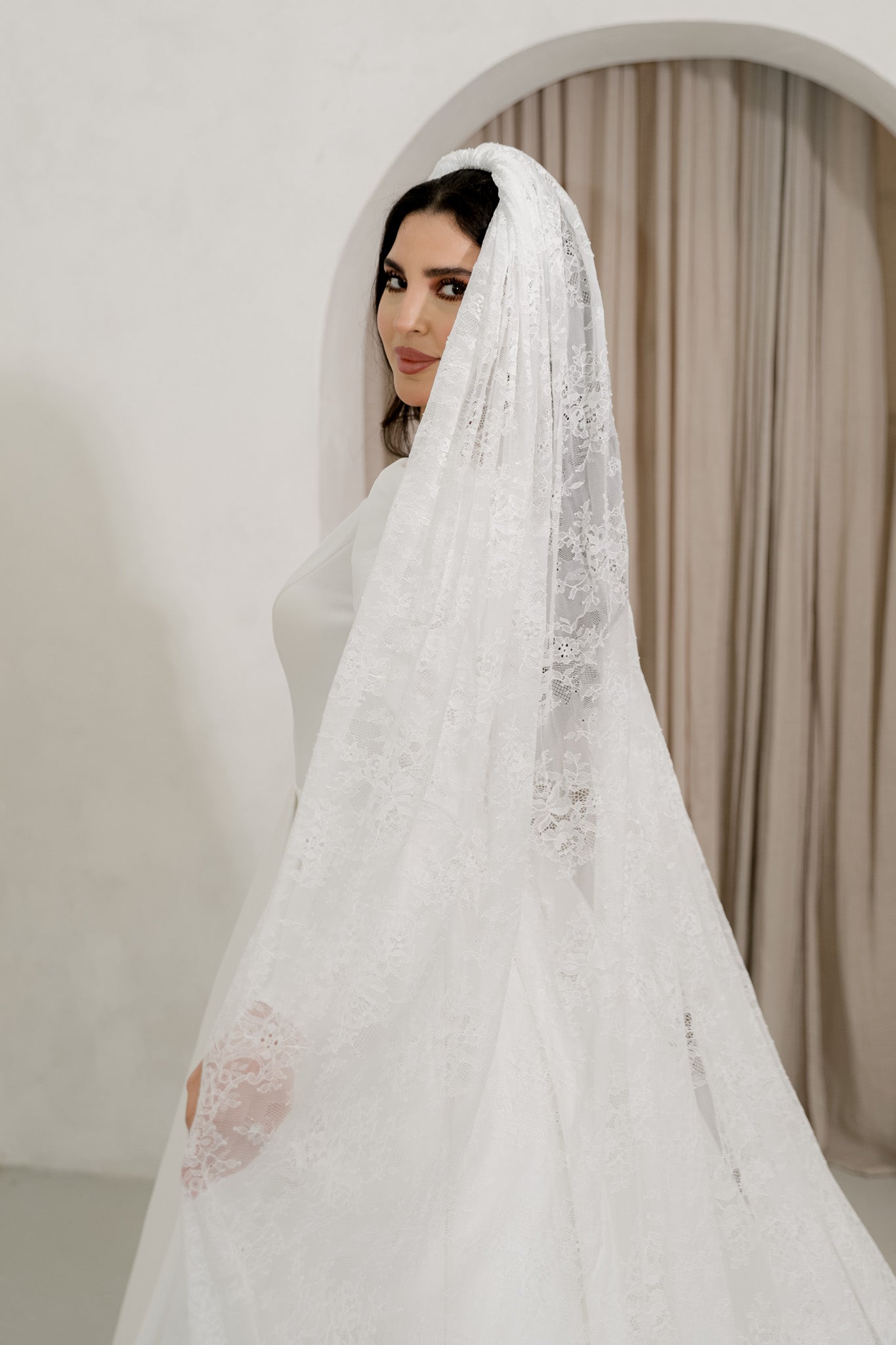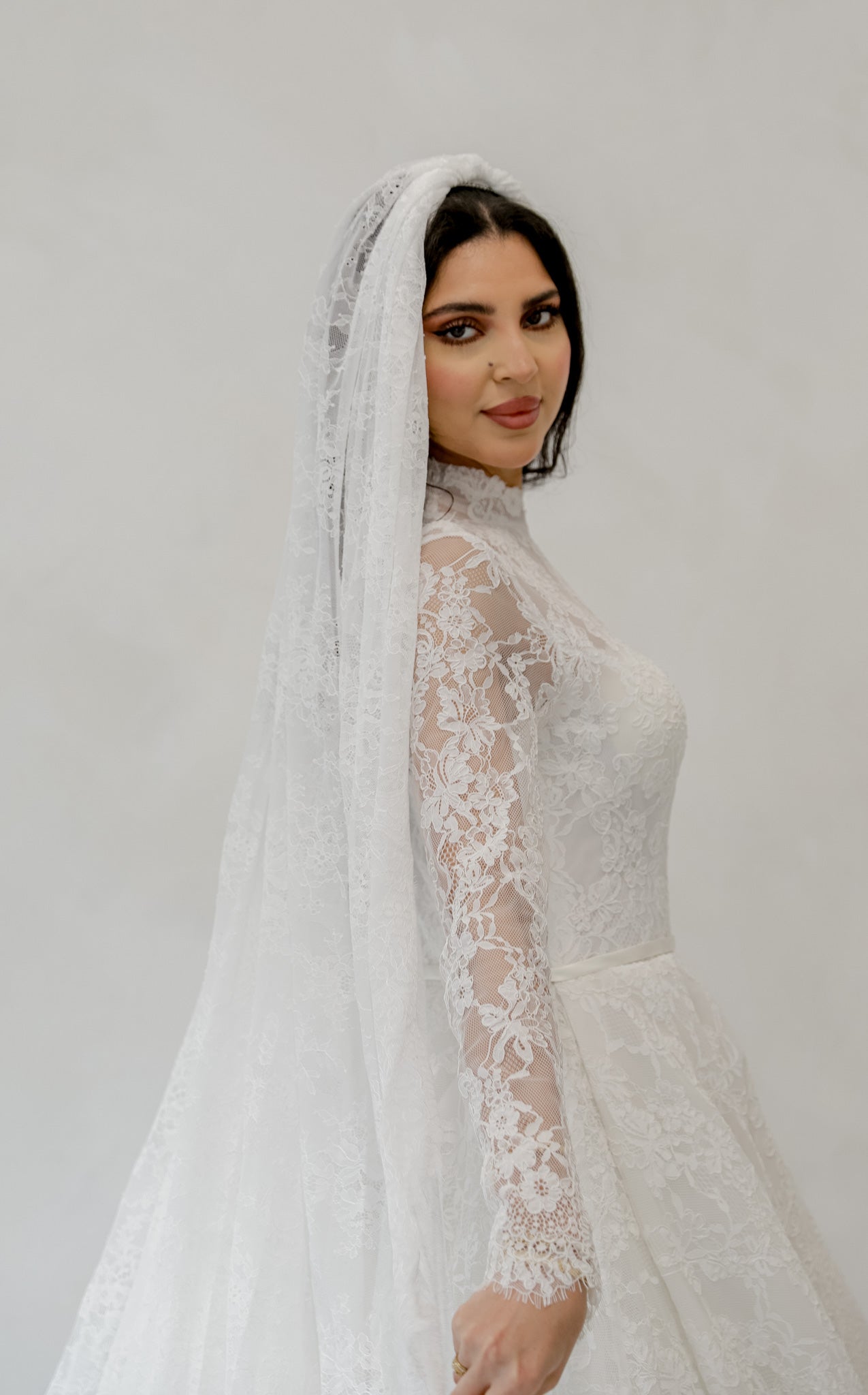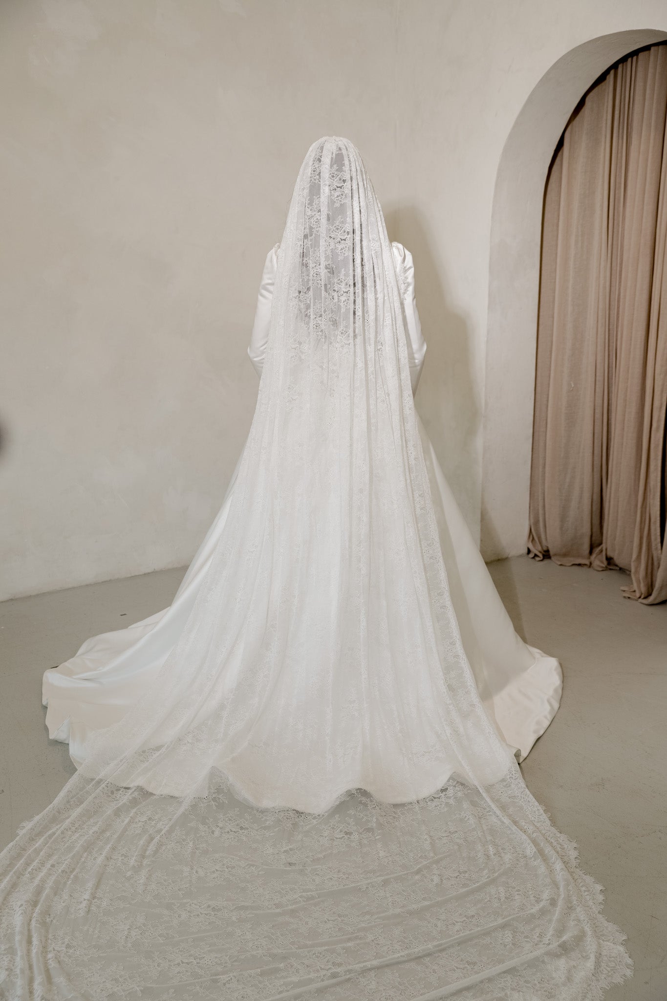 The Lacey veil is the embodiment of classic romance and refined tradition, crafted for brides who are drawn to the timeless beauty of vintage lace.