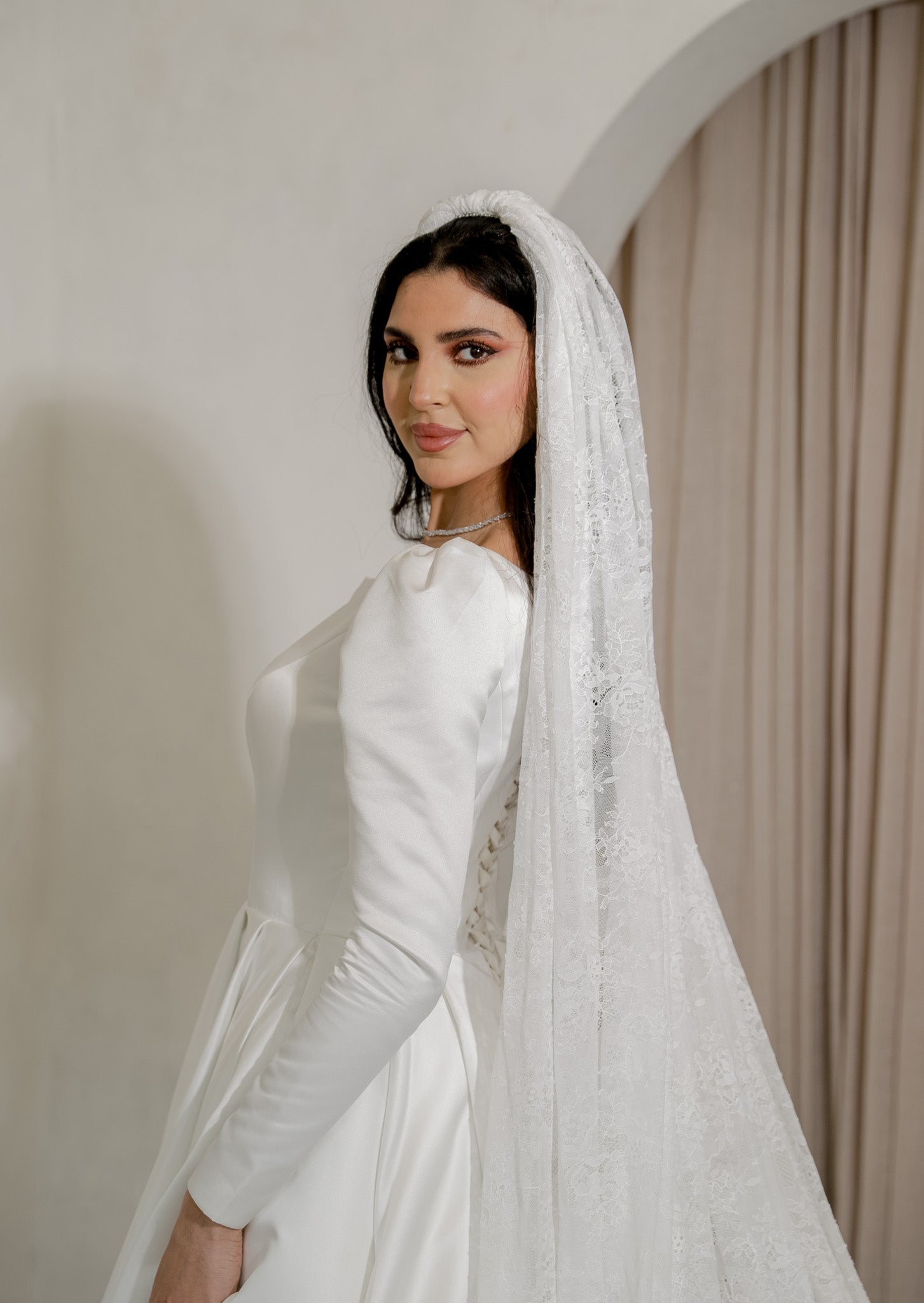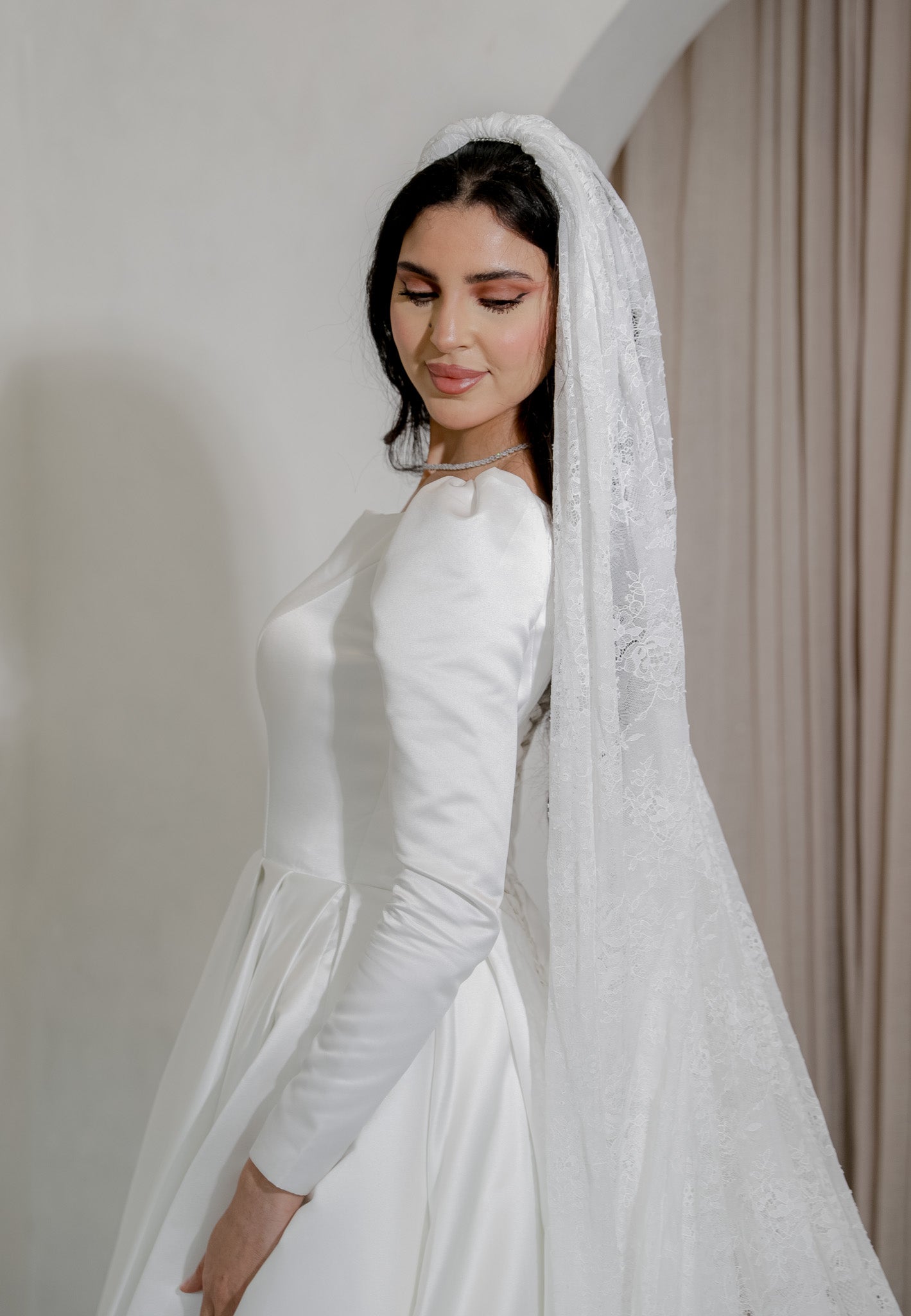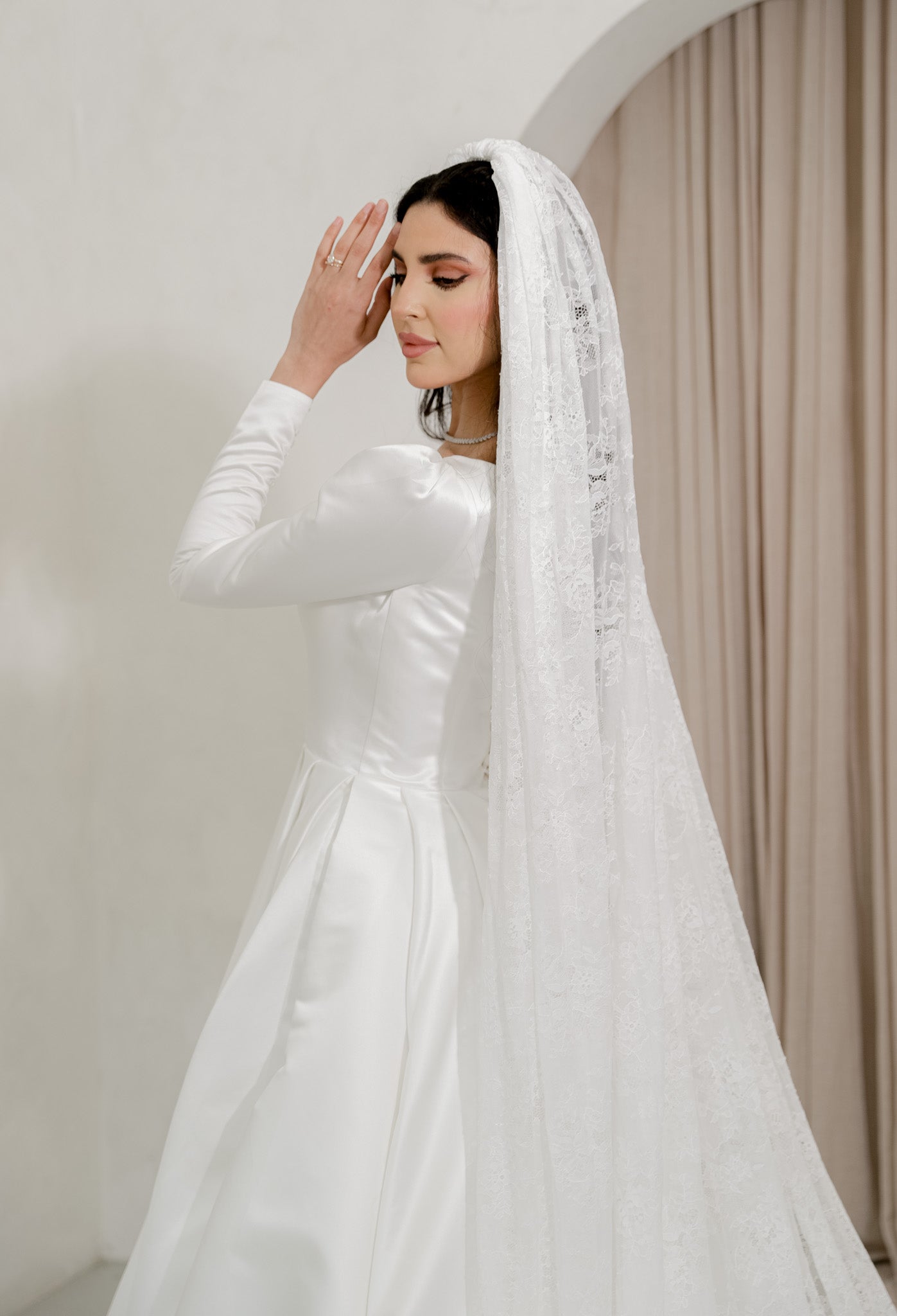 The Lacey veil is the embodiment of classic romance and refined tradition, crafted for brides who are drawn to the timeless beauty of vintage lace.